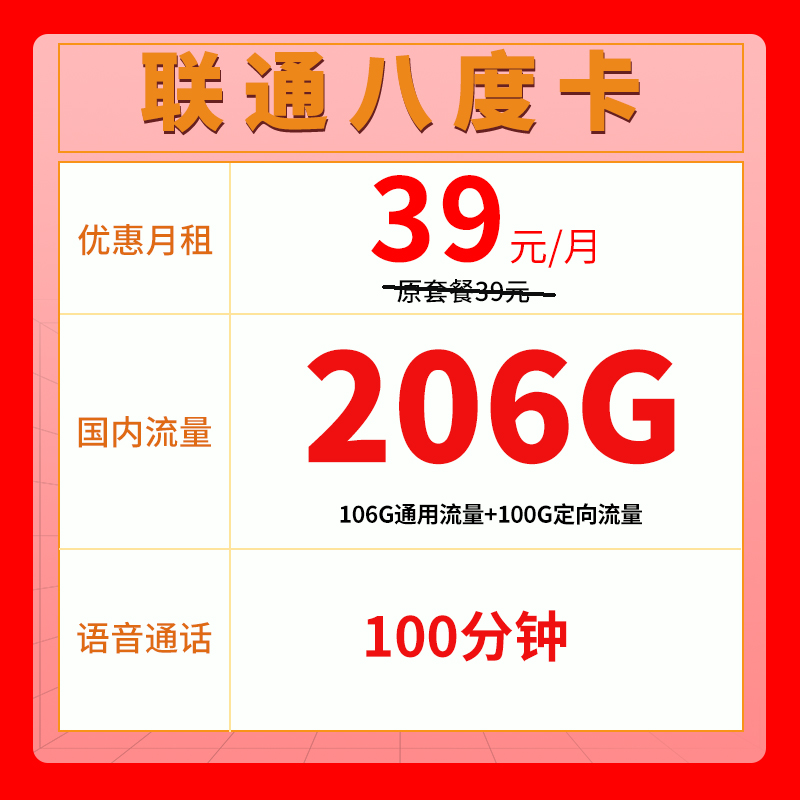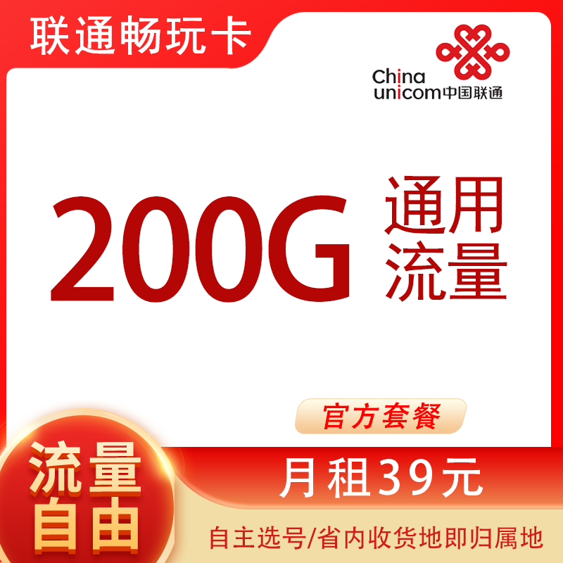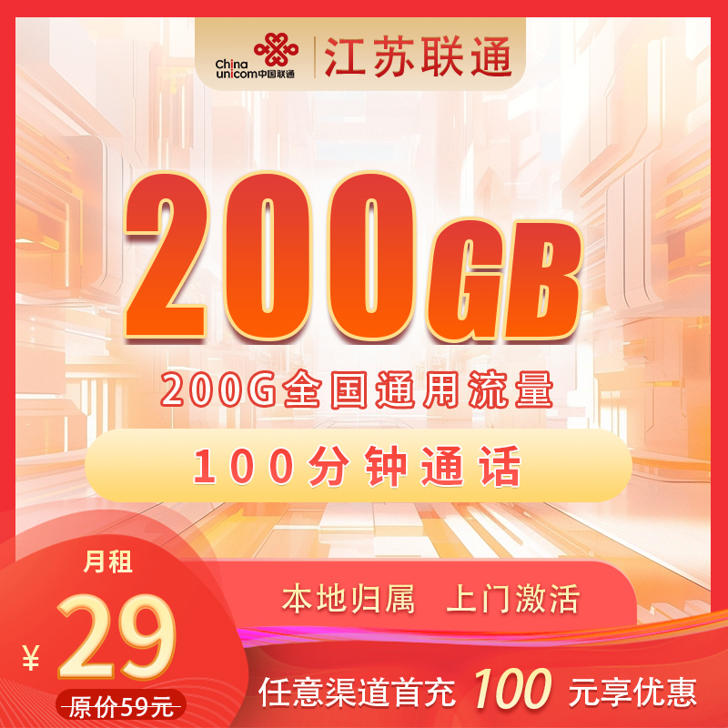 39元包200G+100分钟 只发江苏 收货地为归属地