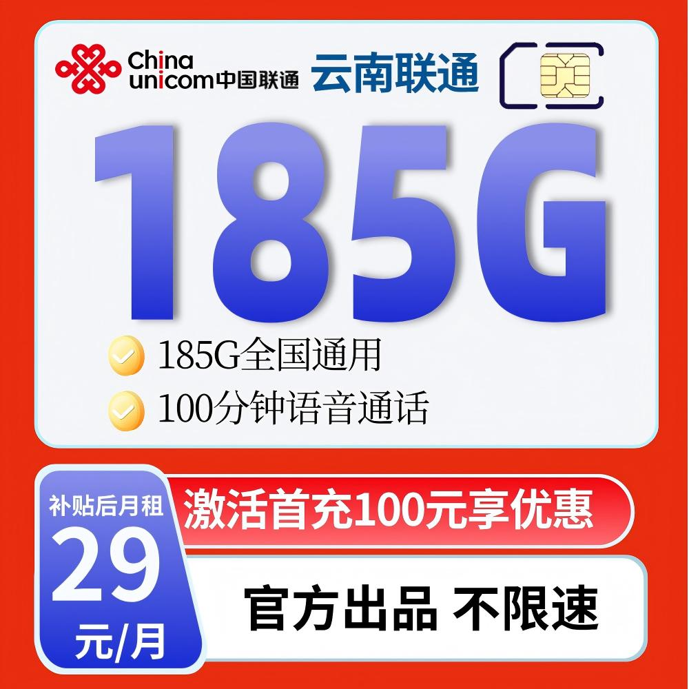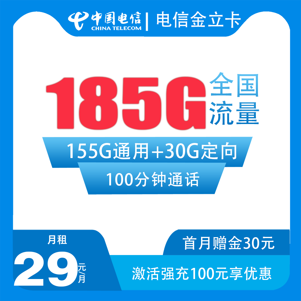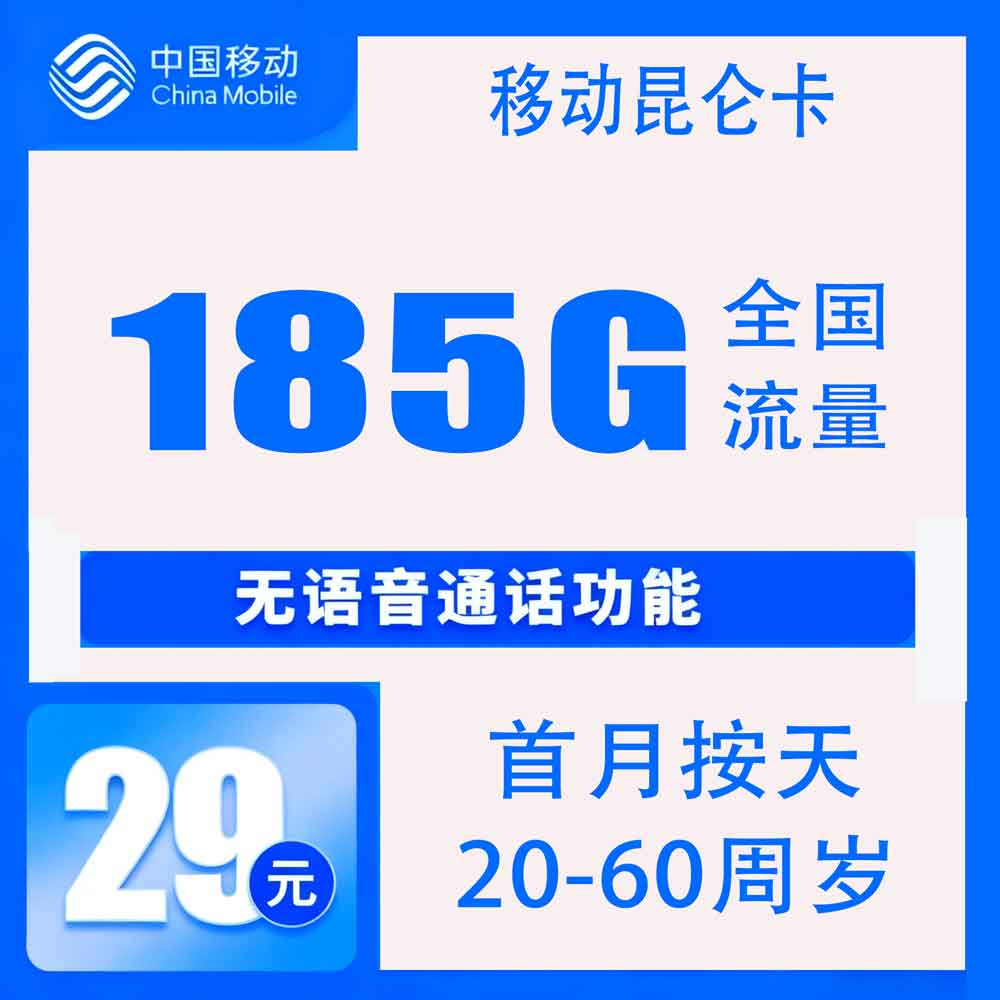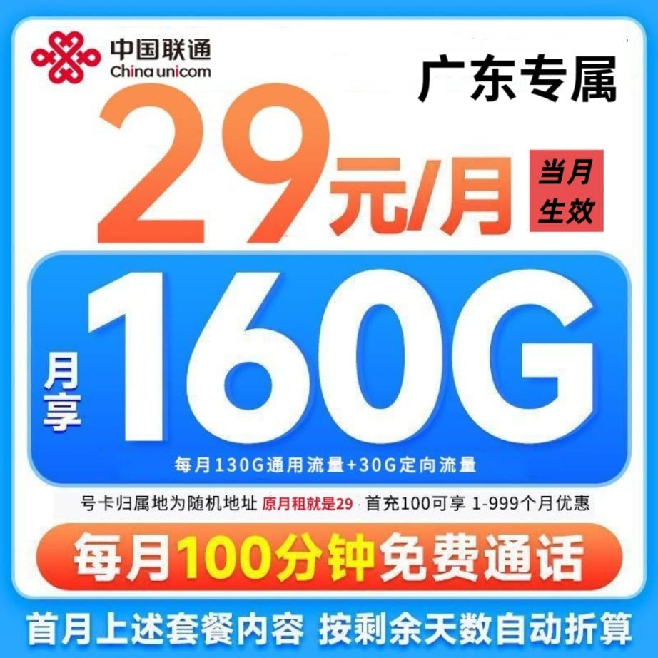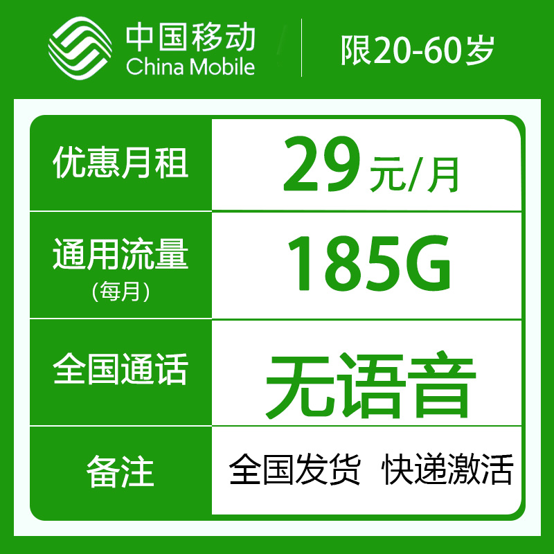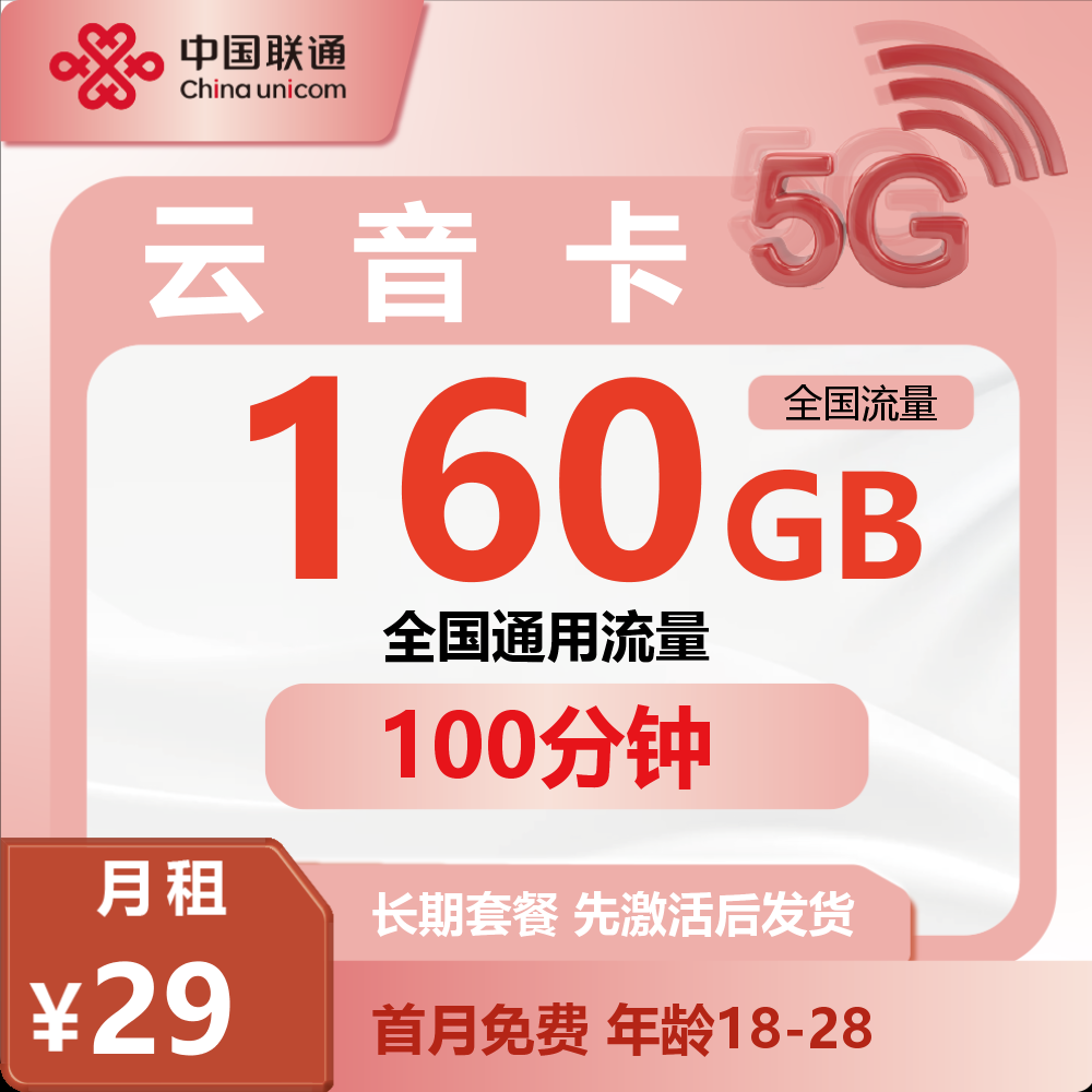 29元包160G+100分钟 年龄18-28 激活充值后发货