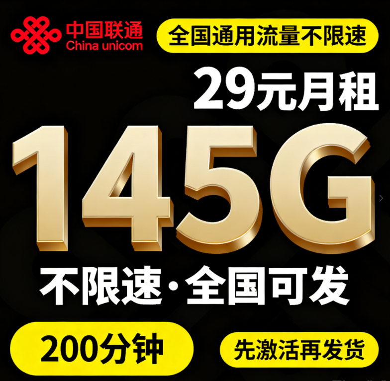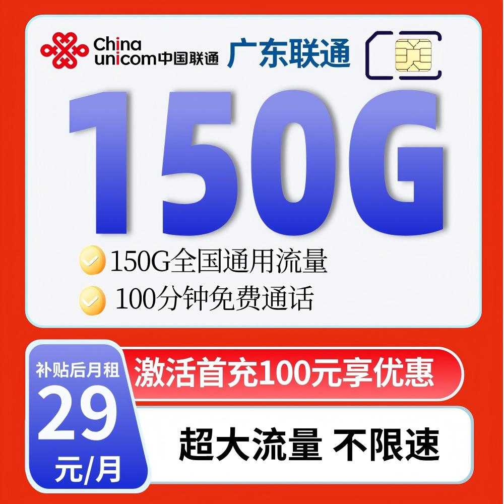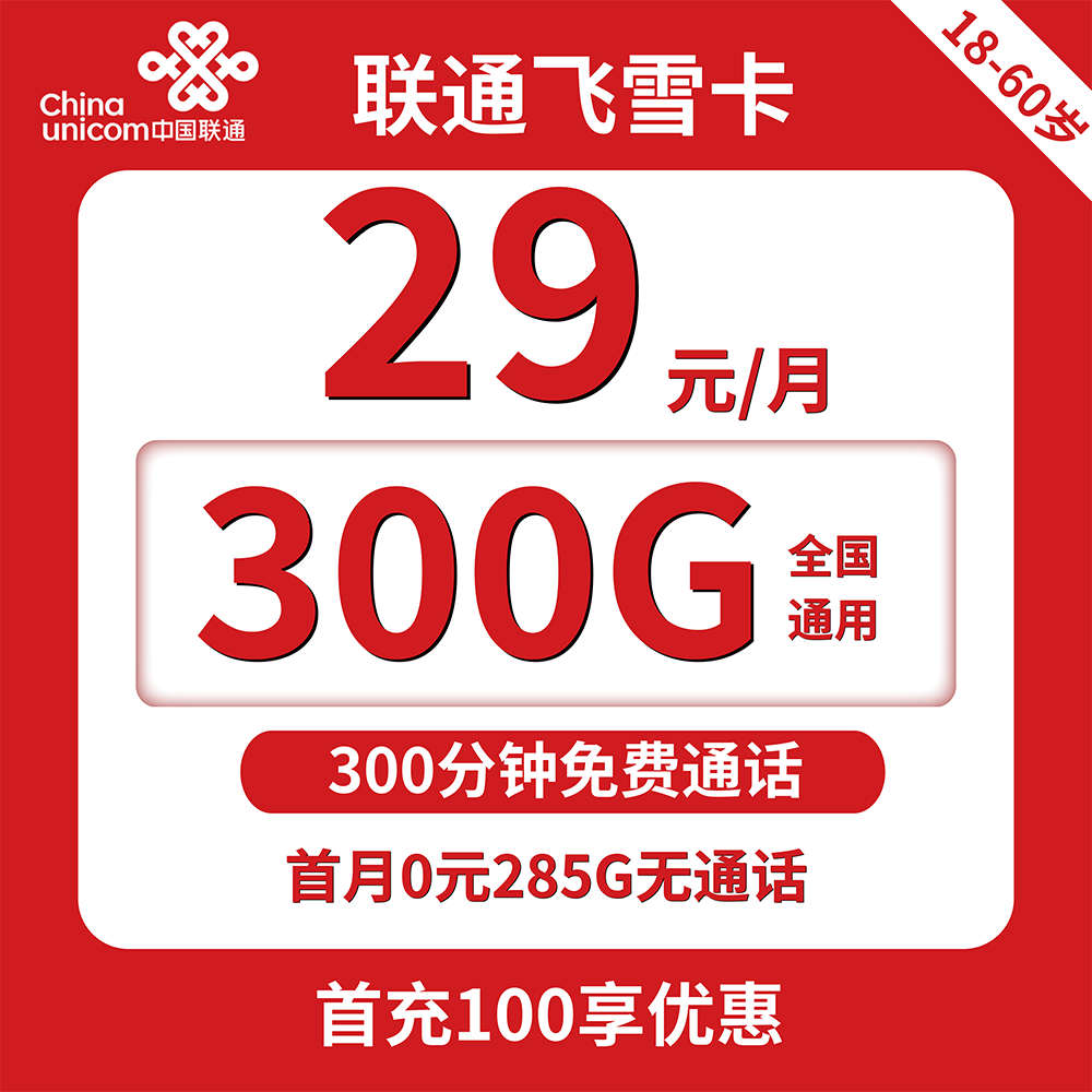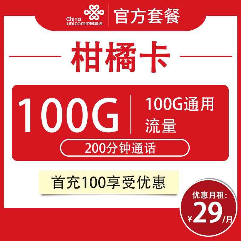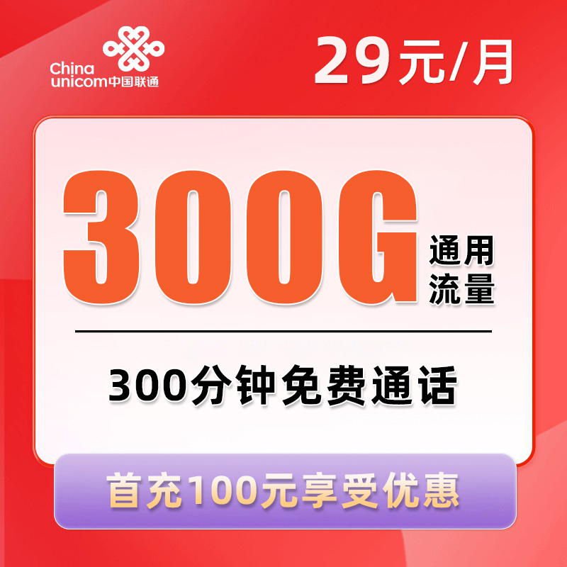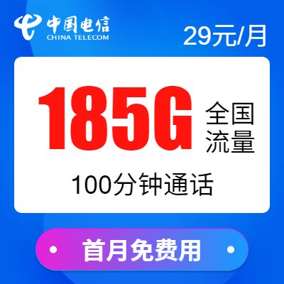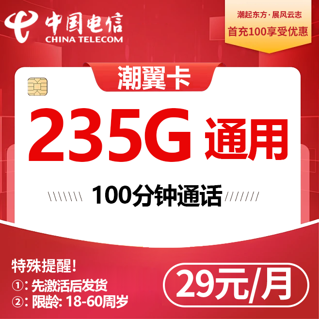 29元包160G+100分钟 年龄18-28 激活充值后发货