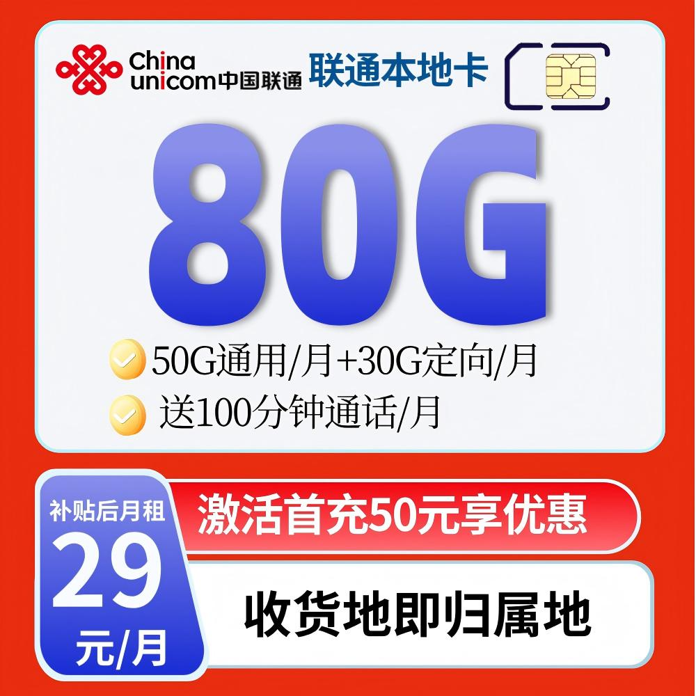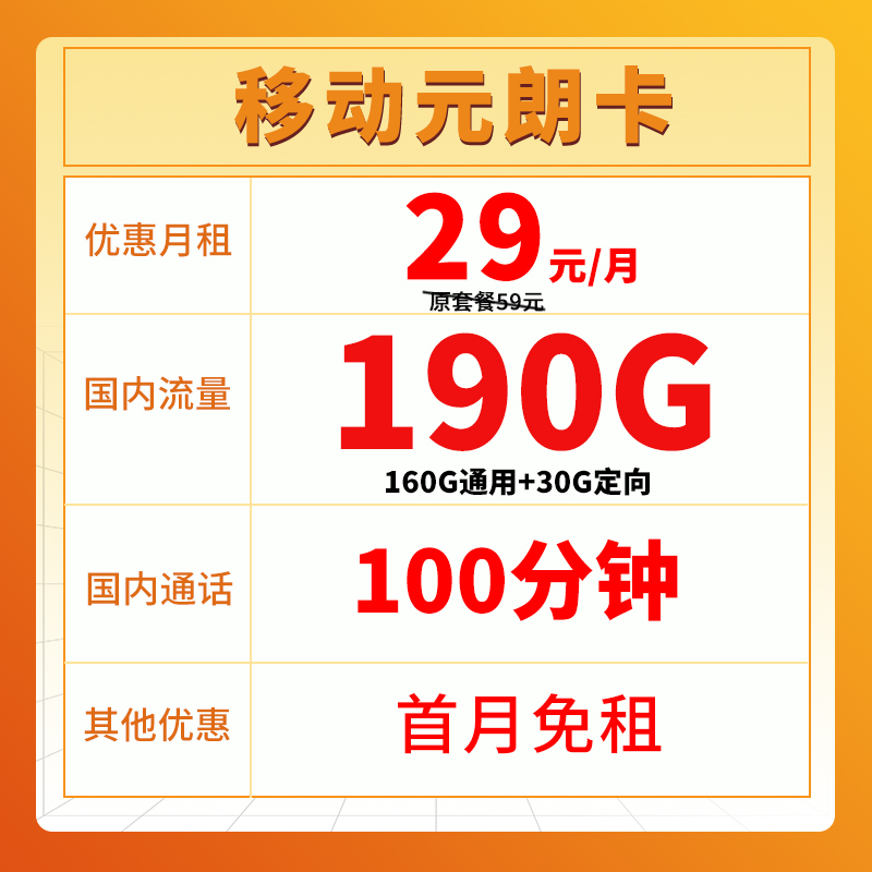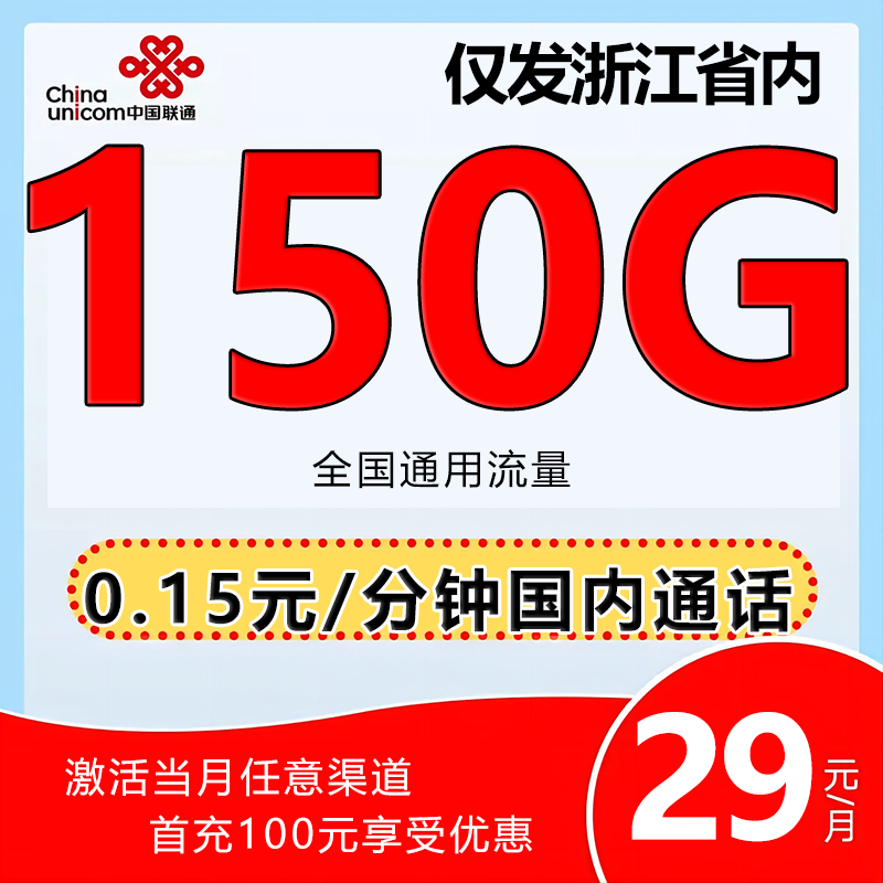 29元包155G+100分钟 只发安徽 收货地为归属地