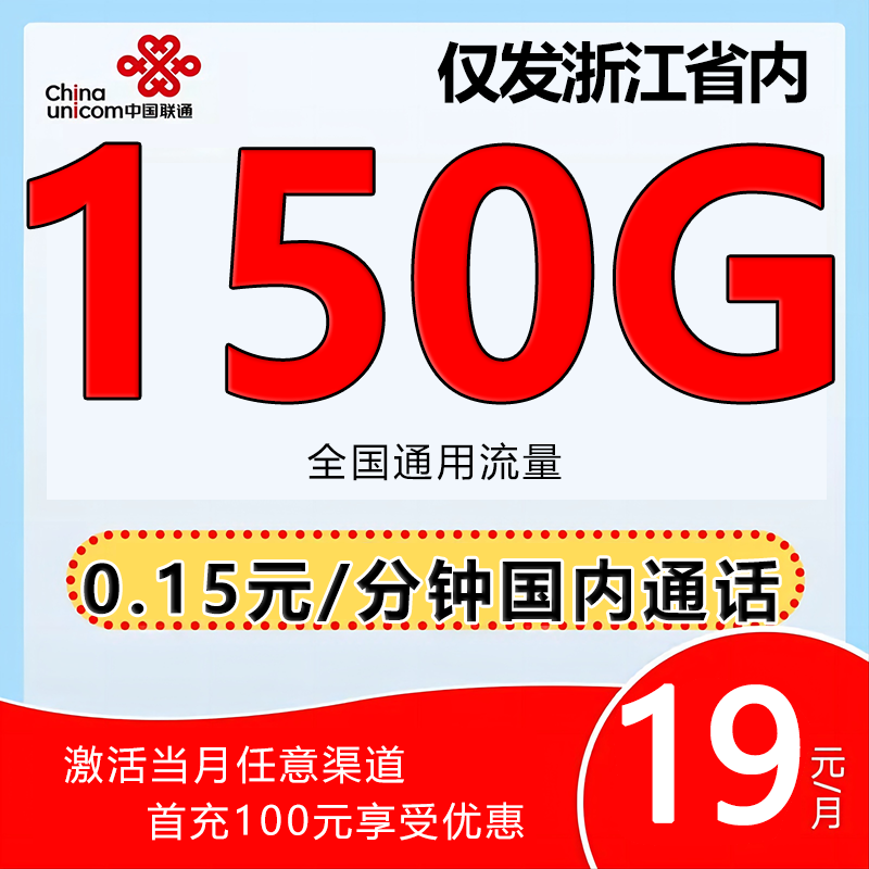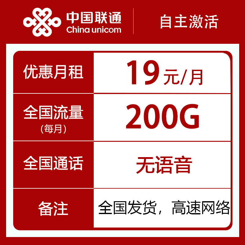 19元包150G+300分钟 年龄18-25岁 激活充值后发货.