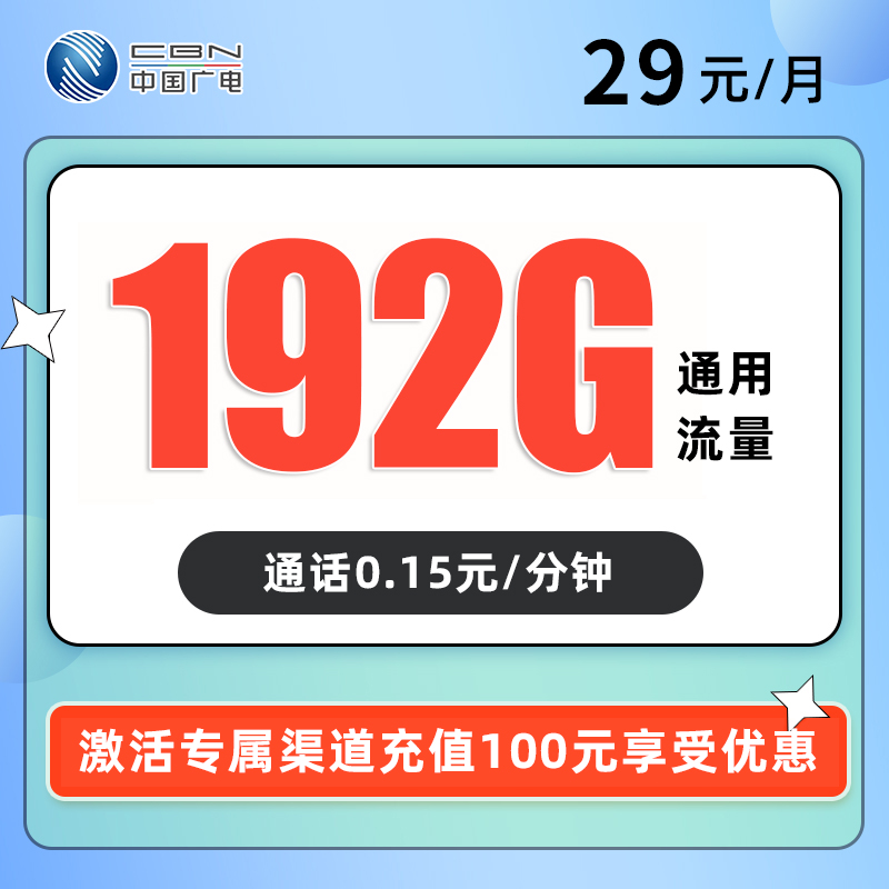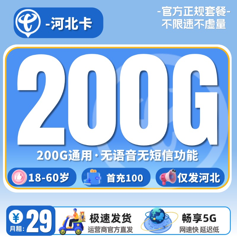 29元包204G+100分钟 只发安琥 收货地为归属地