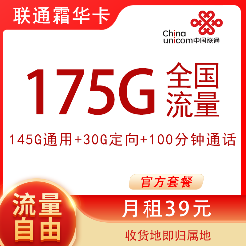 39元包175G+100分钟 只发湖北 收货地为归属地